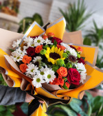 Ayçiçekli Renkli Gül ve Papatya Buketi