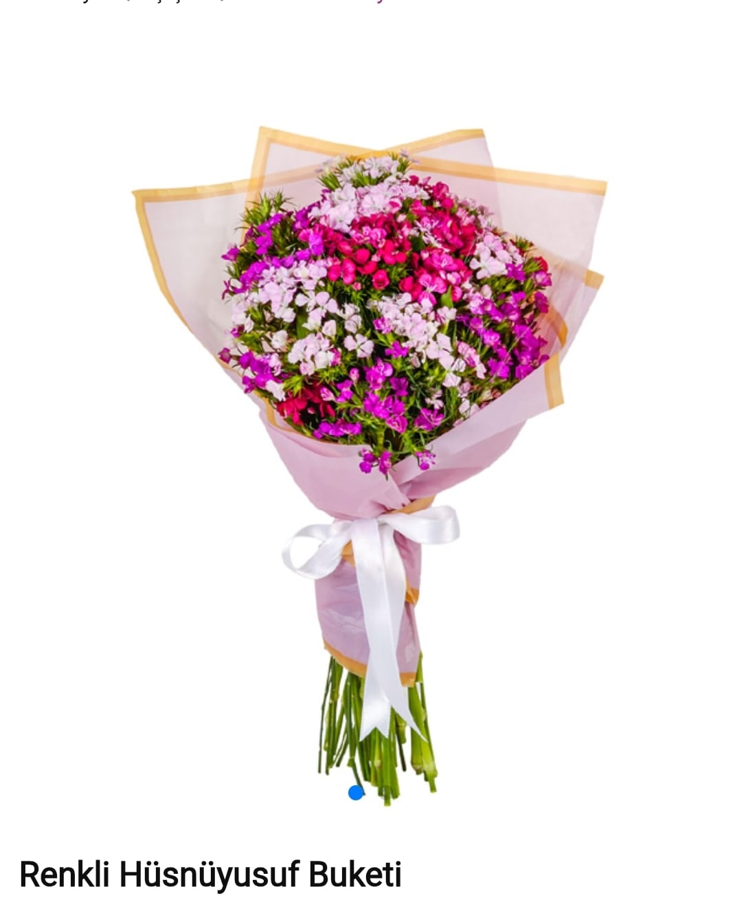 Renkli Hüsnüyusuf buketi, canlı pembe, mor ve beyaz tonlarının uyumuyla hazırlanan zarif bir mevsim çiçeği aranjmanıdır. Doğal ve enerjik görünümü sayesinde hem romantik hem de samimi bir hediye alternatifi sunar. Özel ambalajı ve şık kurdele detayı ile estetik bir sunuma sahiptir.